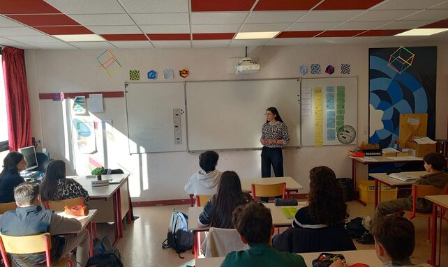 Par admin odilon-barrot, publié le vendredi 3 avril 2026 08:21 - Mis à jour le vendredi 3 avril 2026 08:21Lundi 23 mars, Julie Moulin, ancienne élève du collège est intervenue auprès de la classe de 3ème pour leur présenter son parcours, et répondre à leurs questions sur les poursuites d’études. -